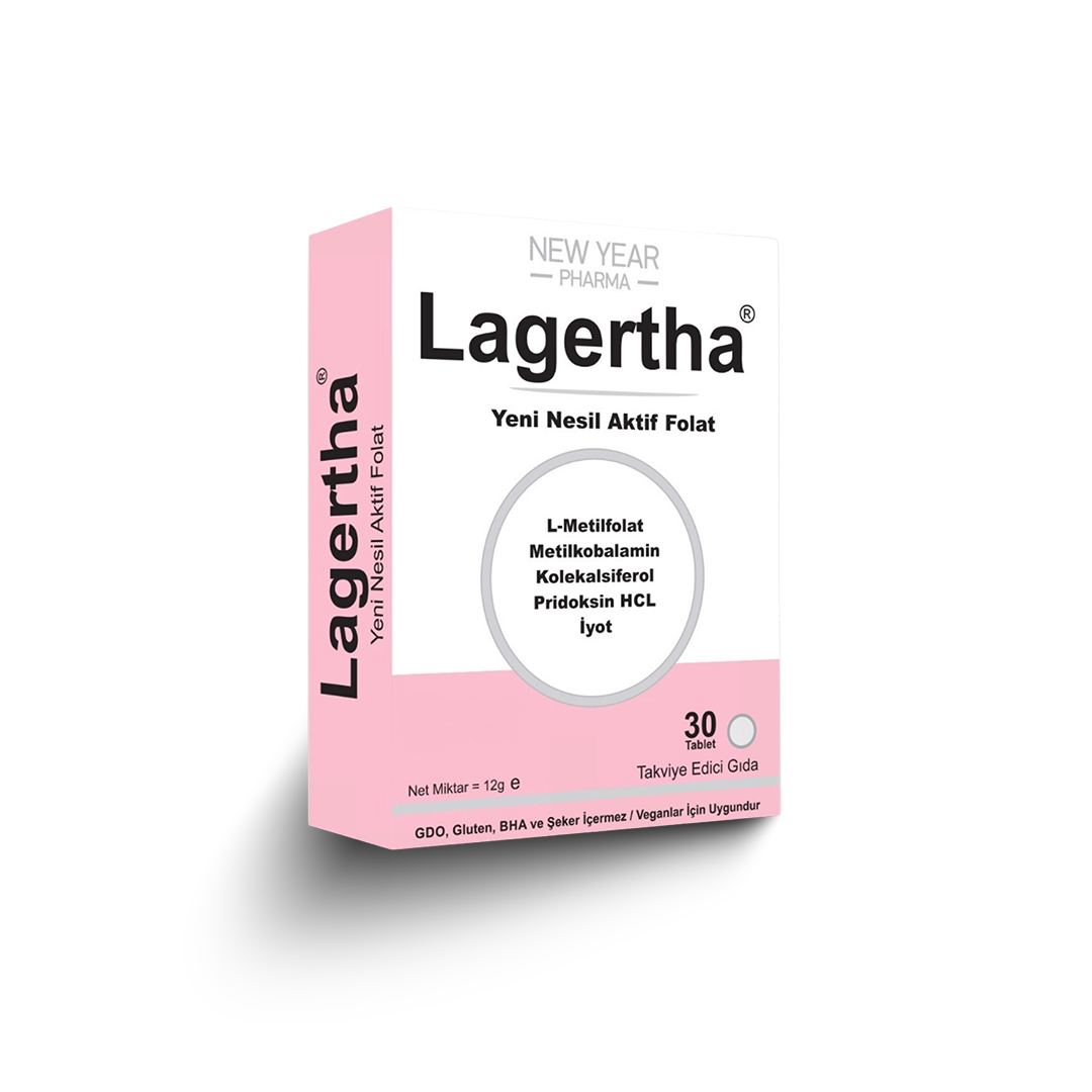 Lagertha 30 Tablet Folik asitin aktif formu olan Kalsiyum-L-metil folat ile formüle edilmiş takviye edici bir gıdadır. Folik asidin aktif formu olan Folat, vücutta dönüşüme ihtiyaç duymaz ve doğrudan kullanıma geçer. Bu sayede biyoyarlanım daha yüksek olur. Lagertha 30 tabletin içinde Folatın haricinde D3(Kolikalsiferol), B12(Metilkobalamin), B6(Piridoksin HCI) vitamini ve İyotla(Sodyum İyodür) güçlendirilmiş bir üründür. Lagertha içerisinde toplam 30 tablet yer alır. Aç veya tok fark etmeksizin günde 1 tablet tüketilmesi tavsiye edilir